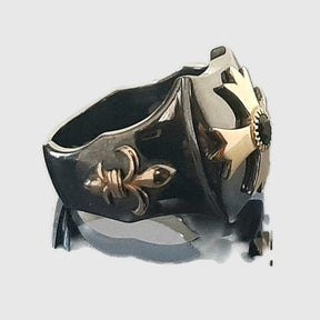 ⭐An exceptional Masonic sterling silver ring with a Gold Templar cross and a Natural Sapphire blue-green color set on top.⭐⭐⭐⭐⭐A five-star rated ring.📜A Masonic Cross symbol signed ring with Gold K9, K14, or K18 Gold elements, a Fleur de Liz cross on top, and two Fleur de Liz on sides. A particular blackened pattern serves as a background, contrasting with aspects like a Masonic art ring. Available in a shiny silver background also. A gold-plated silver option is available. See listing:🌐https://babucojewellery.etsy.com/listing/1747697191♻A recycled piece✍Designed and created by Babuco Jewellery Athens💎Gems: Natural round Blue-Green Untreated Sapphire 4mm/0,25cts🎁Gift box is included.